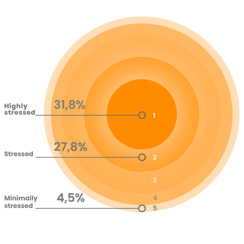 On a scale from 1 to 5, 59.6% of people feel stressed or highly stressed at work.
