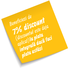 Prețurile exprimate în EURO sunt plătibile și în RON. Toate prețurile sunt valabile la data plății primei rate.